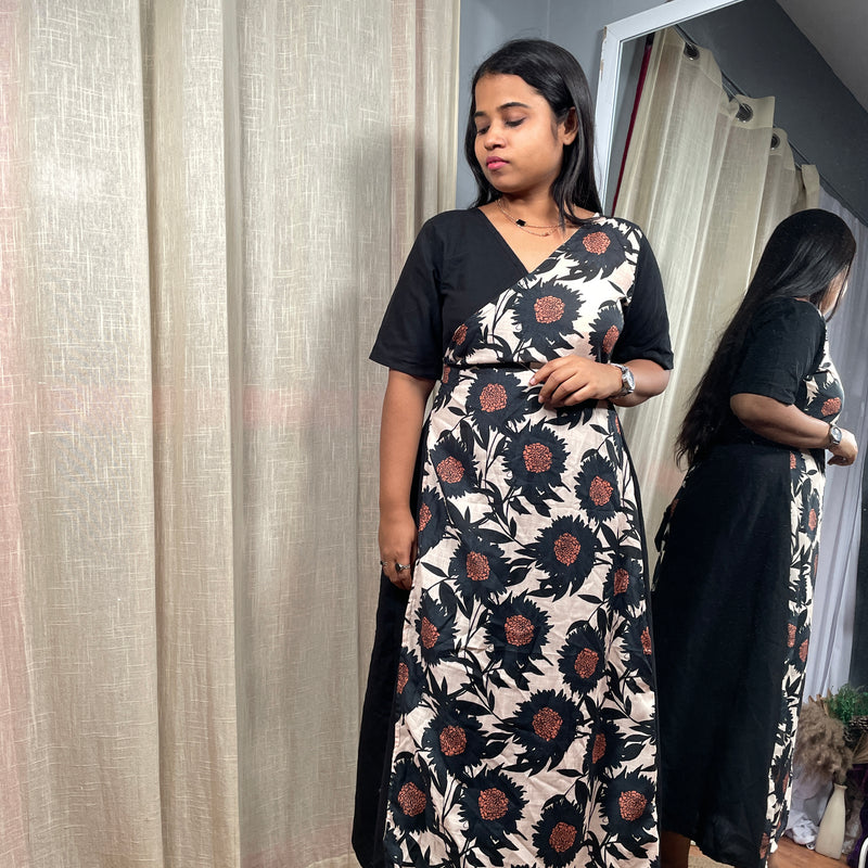 Aline wrap dress can be styled in multiple ways .Made up of pure cotton fabric .